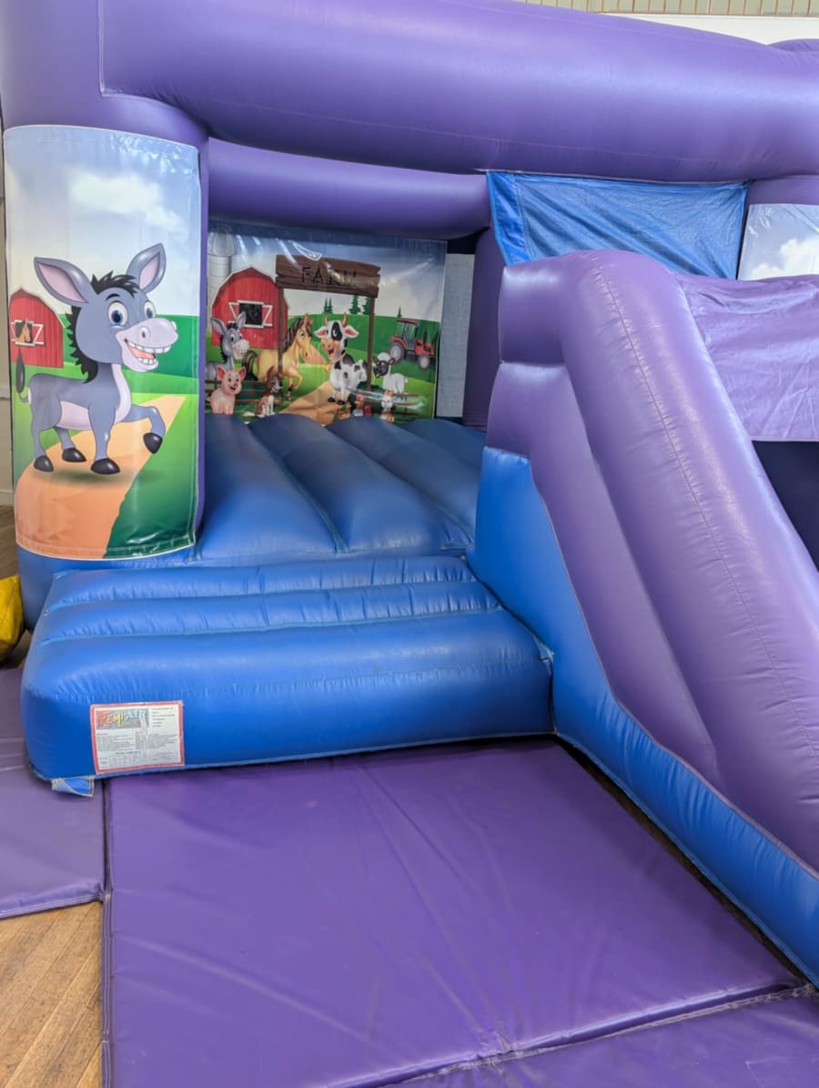 Ideal for any farm or animal party, this castle has a slide to add a little more entertainment to a traditional bouncy castle.